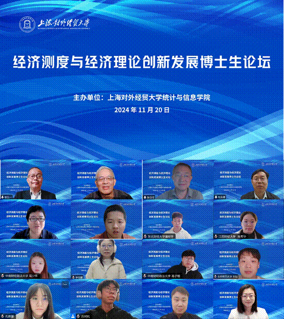 11月20日,由統計與信息學院主辦的“經濟測度與經濟理論創新發展博士生論壇”順利舉行。廈門大學特聘教授、教育部高等學校統計學類專業教學指導委員會原主任委員曾五一教授,江西財經大學講席教授、教育部長江學者特聘教授、全國哲學社會科學規劃項目學科評審統計學組召集人邱東教授,西南財經大學彭剛教授,廈門大學鄭正喜副教授,我校統計與信息學院院長張日權教授、經濟統計系劉永輝教授出席。論壇吸引了來自中國人民大學、北京師范大學、廈門大學、中南財經政法大學、西南財經大學、東北財經大學、浙江工商大學、浙江財經大學以及我校等60余名師生參加。論壇由統計與信息學院經濟統計系主任李佩瑾主持。