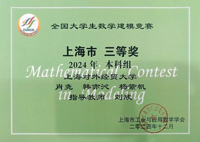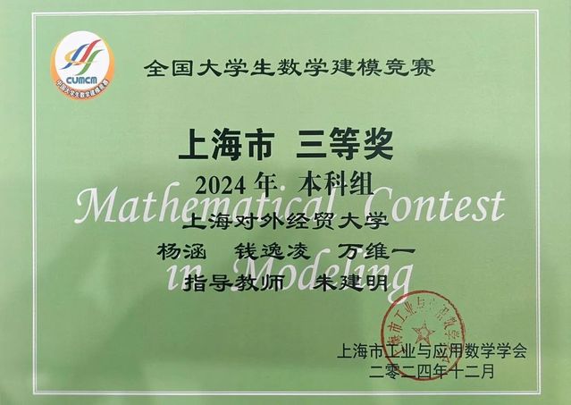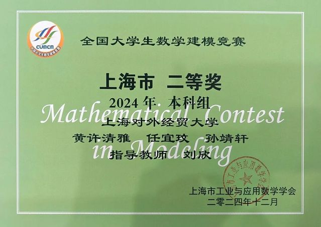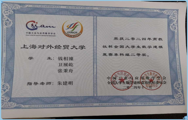 近日,備受矚目的2024年高教社杯全國大學生數學建模競賽頒獎典禮圓滿落幕。我校學子在此次競賽中再創佳績,共斬獲國家二等獎1項、上海市一等獎1項、二等獎7項及三等獎9項。其中,由統計與信息學院衛展屹、金融學院錢相潼、張秉舟三名學生和指導教師朱建明組成的團隊,憑借其卓越的表現和深厚的專業功底,獲得國家二等獎。