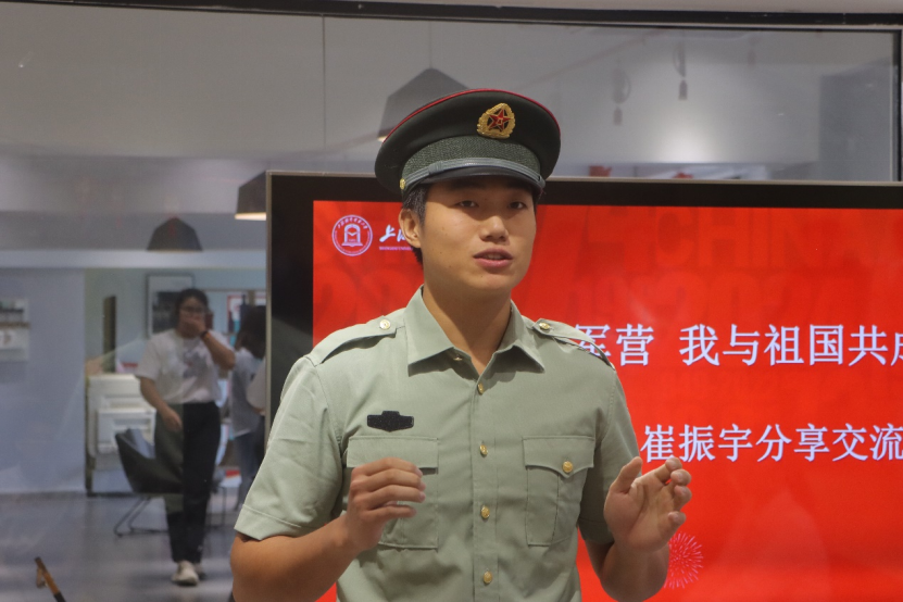 退伍學生崔振宇作“青春無悔獻軍營,我與祖國共成長”主題分享。他結合自身的成長經(jīng)歷,分享入伍初心和在部隊艱苦訓練、淬火成鋼的難忘歲月。他反復提到,“只要國家需要我,我就義不容辭”深深感染在場的每一位學生,激勵大家以堅定的信念和實際行動報效國家。