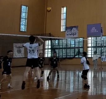 比賽開始時,隊長張笑揚的精彩發球使統信隊先拿到了兩分,法學院隊員的失誤讓統信隊再得一分。隨后法學院隊員便展開了猛烈的追擊,將比分反超到3:5。但是統信隊員們并沒有氣餒,隊員韋安石的兩個精彩扣球給隊員們鼓舞了士氣,將比分扳回9:6,同時法學院球員也發揮穩定,幾個球后又將比分拉回了9:9,雙方依然緊咬比分,互相追趕,毫不示弱。隊員趙思萁的幾個發球均可圈可點,隊員張欣頤也接住了幾個關鍵球,這些均使得統信球員士氣大增,將比分拉到了19:13。隊員趙嘉熠憑借發球拿下一分,對方也緊追,比分來到了21:18后統信連拿三球,隊長張笑揚拿下最后一球,將比分鎖定在25:18,統信贏得兩連勝。