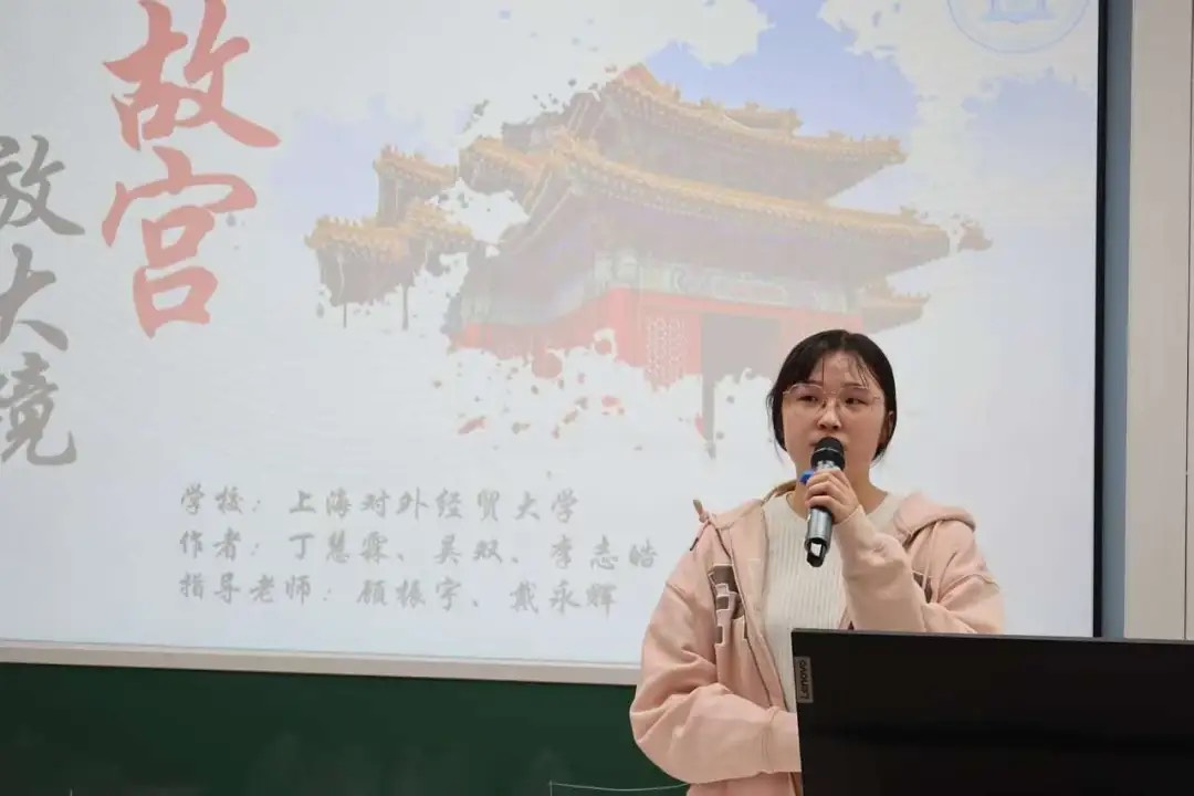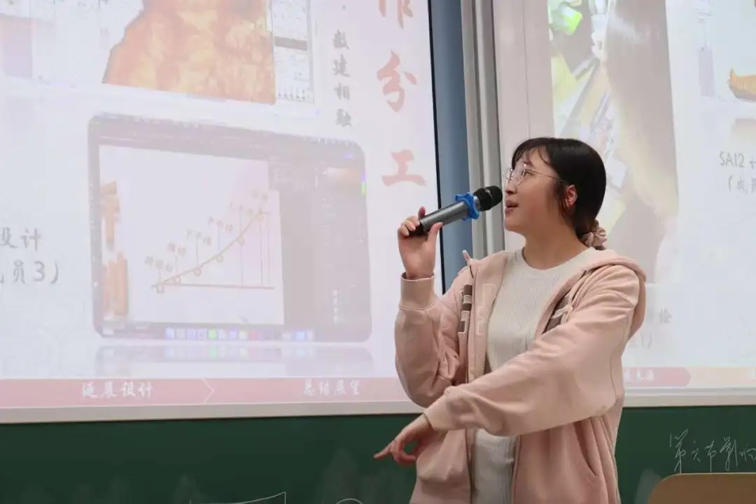 丁慧霖組的主題為《故宮放大鏡》,他們把古代數(shù)學(xué)與建筑學(xué)結(jié)合,從靈感來源、設(shè)計(jì)理念、細(xì)節(jié)展示等方面向我們?nèi)娴牡卣故玖似錅?zhǔn)備過程與成果。