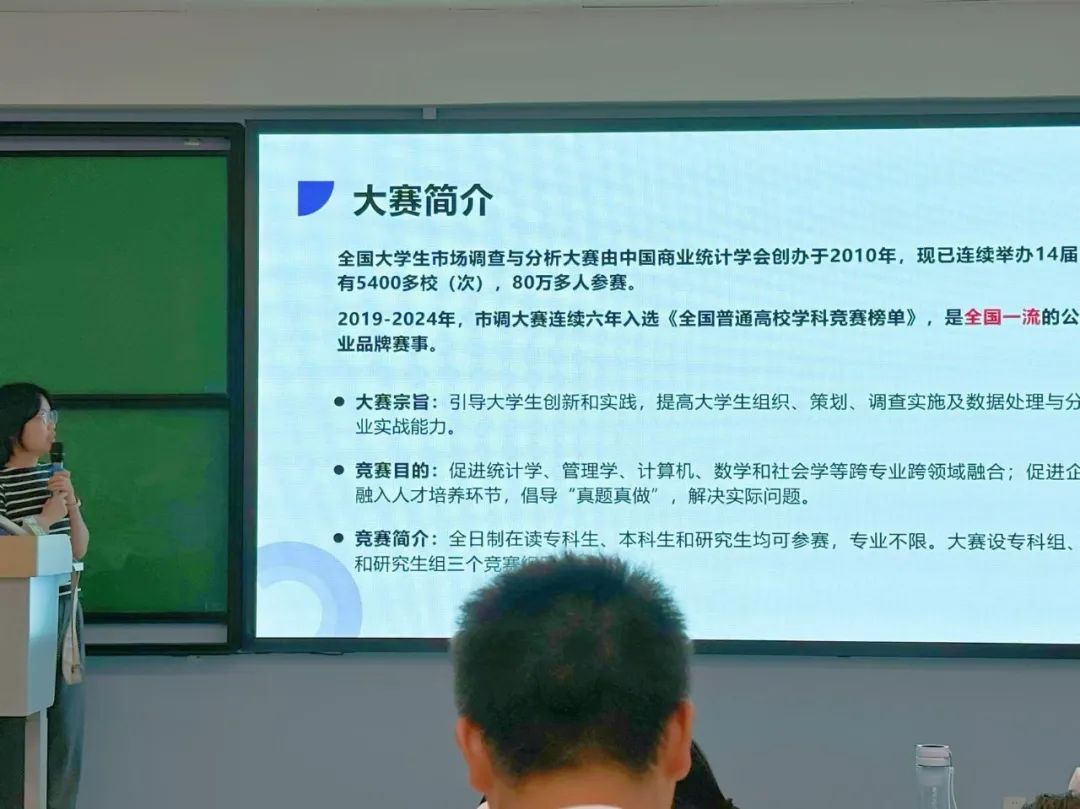 “正大杯”第十五屆全國大學生市場調查與分析大賽主題宣講于2024年10月14日(周一)17:00在學思樓SD2教室開展,統計與信息學院經濟統計系鄒欣悅老師為大家帶來精彩宣講內容。