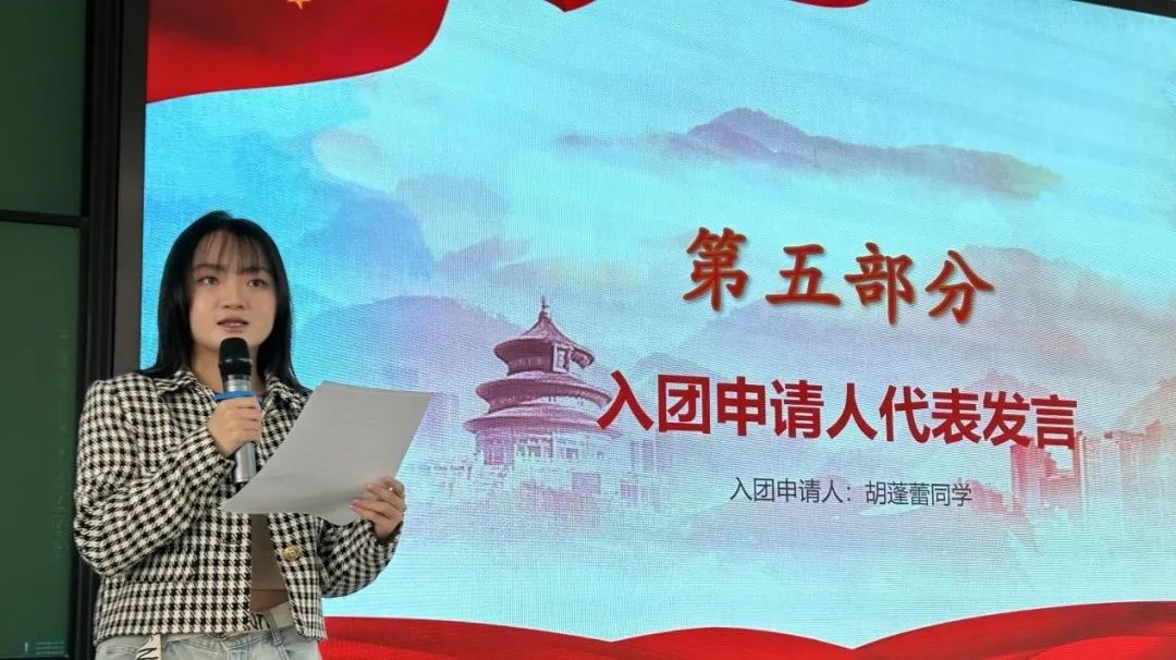 入團申請人代表胡蓬蕾同學發言,她提到,雖然還未加入共青團,但早已心向往之。她表示,在追求學業的同時,也會積極參與集體活動,努力提高組織協調能力,關心國家和社會的發展,將個人價值融入到時代的大潮中去。