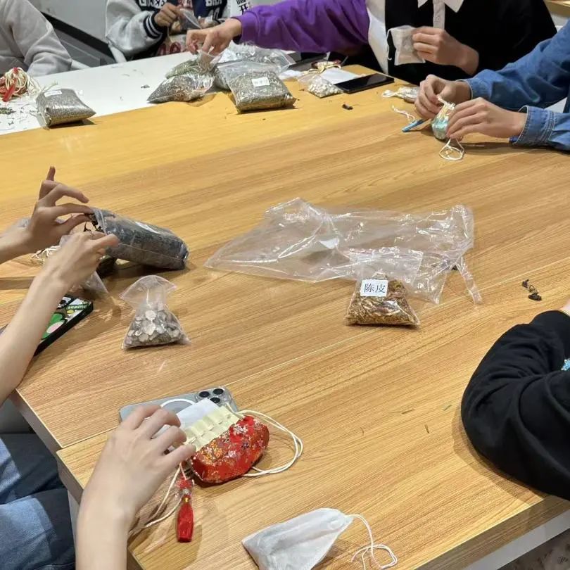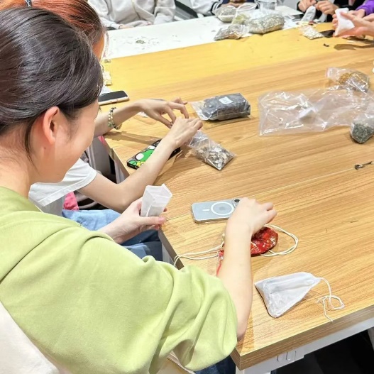 在了解了香囊的歷史與種類之后,同學(xué)們紛紛開始了自己的制作香囊體驗。活動現(xiàn)場洋溢著濃厚的藝術(shù)氛圍,每個人都在盡情發(fā)揮自己的想象力和創(chuàng)造力,用多種多樣的香料制作出獨一無二的作品。在制作過程中,同學(xué)們互相交流、互相幫助,現(xiàn)場氣氛熱烈而融洽。通過這次制作香囊體驗活動,同學(xué)們不僅鍛煉了自己的動手能力和藝術(shù)創(chuàng)造力,更是在實踐中感受到了團隊合作的力量和樂趣。