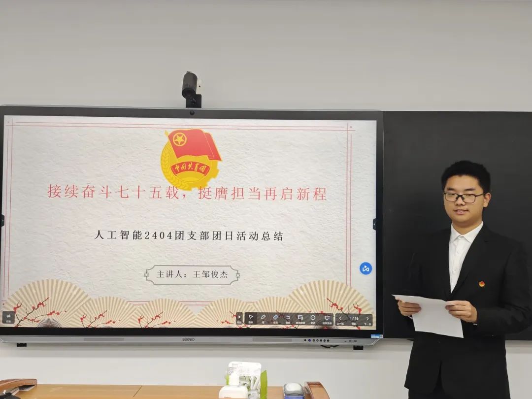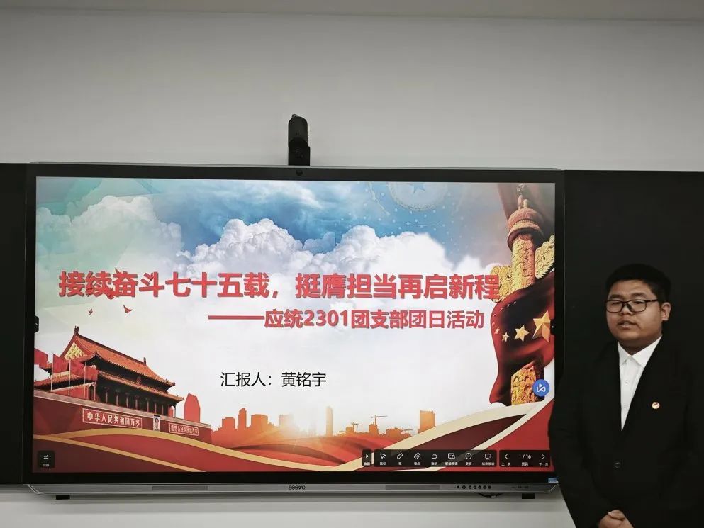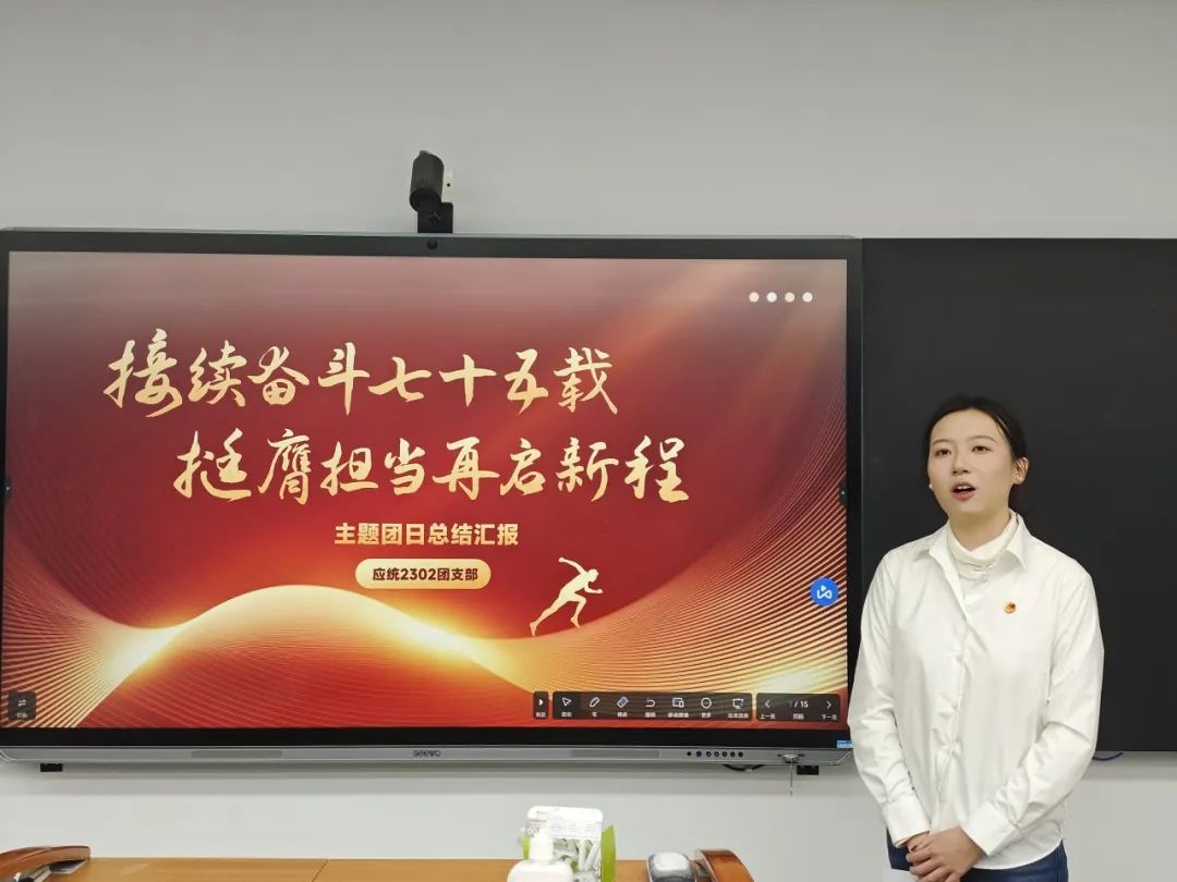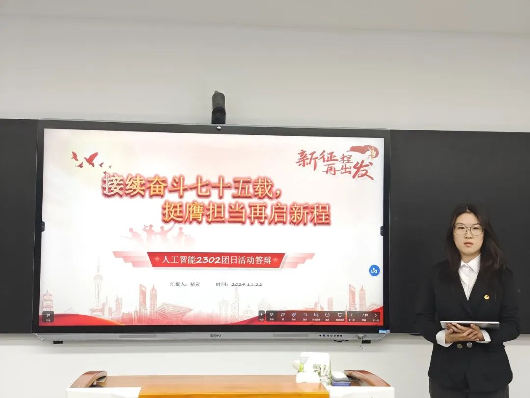 在主持人介紹答辯流程及規則后,答辯正式開始。參與答辯的27位團支部書記按照順序依次上臺展示匯報。過程中,各位團支書詳細介紹了所在團支部團日活動的開展情況,充分體現了豐富多樣的創意文化作品與開展過程中取得的成果經驗。紅色文創、知識問答、紅色劇本殺、實地尋訪手帳宣傳海報、奮斗感悟、主題精講團課、團支部共建回顧,公眾號視頻號運營,這些充實的成果內容彰顯出每一個團日活動背后團支部書記與全體團支部成員的辛勤付出與協作精神。