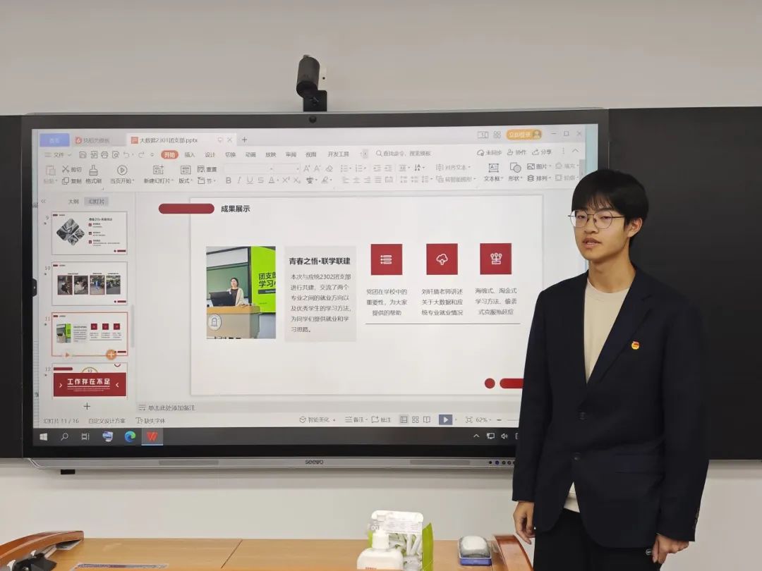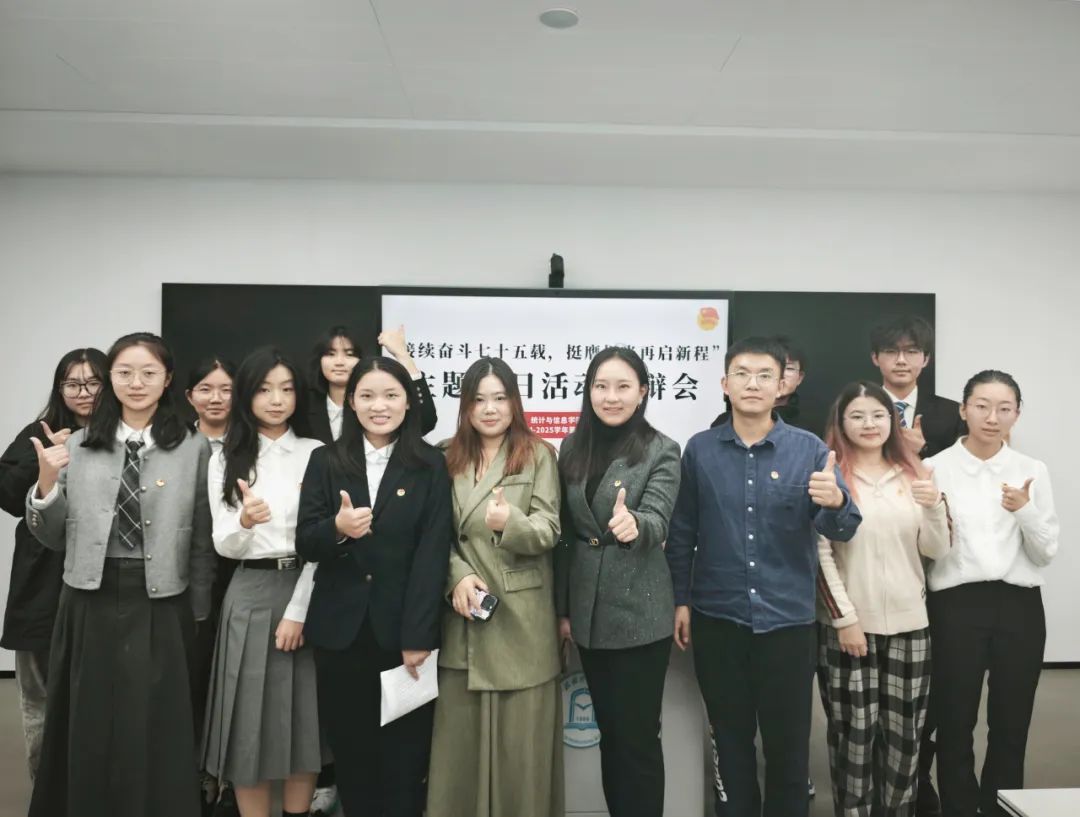 2024年11月22日,統計與信息學院“接續奮斗七十五載,挺膺擔當再啟新程”主題團日活動答辯會在學思樓SD408教室順利舉行。學院黨建主管馮越、團委書記岳怡寒、團委副書記彭鵬、校團委組織部負責人徐欣然、統信學院學生團委副書記吳一凡、學生黨建促進中心主任封冰悅以及全體2023級、2024級團支書參加會議,會議由統計與信息學院組織部石蕊婷主持。