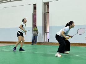 本場女雙比賽我方派出陳毓琳和楊雨欣同學迎戰。開局對方率先進入狀態,拿下一局。我方調整狀態和打法,在第二局中不斷得分,但對方也毫不懈怠,我方以微小分差失利。第三局對方乘勝追擊,我方一時不敵,遺憾落敗。