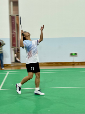 首先進行的是男子單打比賽,我方派出的是孫浩宸同學。比賽伊始,我方便以迅猛的進攻連續得分,打出了水平,并鼓舞了士氣。而后我方愈戰愈勇,連續的殺吊結合讓對手措手不及。雖有些許小失誤,但依舊以一定的優勢領先對手。最終孫浩宸同學以21:18的成績摘得頭籌,為本場循環賽開了一個好頭。