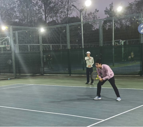 第四場是男子雙打。我院馬奕騁、蔣邵韋選手再次攜手共戰、蓄勢待發,前半場保持領先,但會計學院選手不甘示弱,比分以4:4打平,后半場我方選手狀態更佳,發球有力,接球有速,最終獲得了勝利,取得6:4的成績。