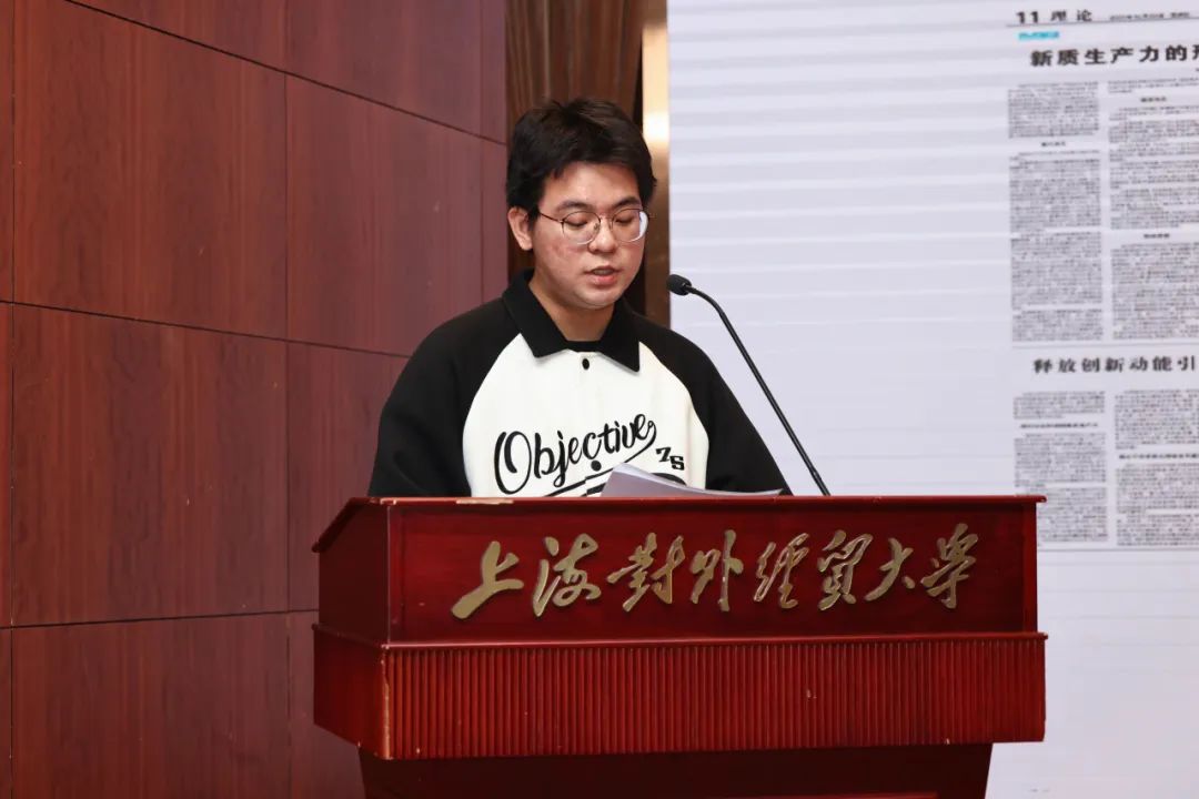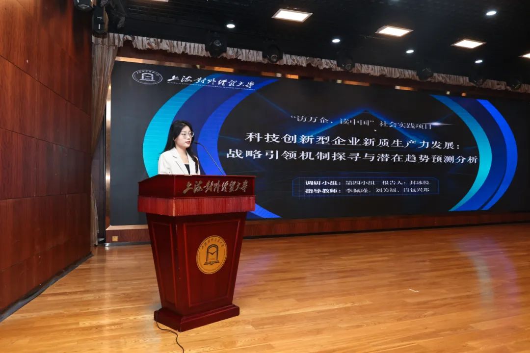會上進行了調(diào)研隊伍成果展示。統(tǒng)計與信息學院碩士研究生封冰悅以《科技創(chuàng)新型企業(yè)新質(zhì)生產(chǎn)力發(fā)展:戰(zhàn)略引領(lǐng)機制探尋與潛在趨勢預測分析》為主題,介紹團隊調(diào)研實施過程與分析方法,得出影響機制等結(jié)論并提出建議。統(tǒng)計與信息學院本科生徐楚杰以《新質(zhì)生產(chǎn)力驅(qū)動下的新能源汽車產(chǎn)業(yè)鏈重構(gòu)與增量創(chuàng)新路徑研究》為主題,深入剖析新能源汽車行業(yè)發(fā)展,分析其受多種因素影響及變革重構(gòu)情況,通過調(diào)研模型提出創(chuàng)新路徑。國際組織學院(貿(mào)易談判學院)本科生陽岸容以《新質(zhì)生產(chǎn)力驅(qū)動顛覆性技術(shù)在上海高新企業(yè)的發(fā)展調(diào)查研究》為主題,交流團隊調(diào)研方案實施、分析結(jié)果及心得感悟,為企業(yè)發(fā)展提供可參考的建議。