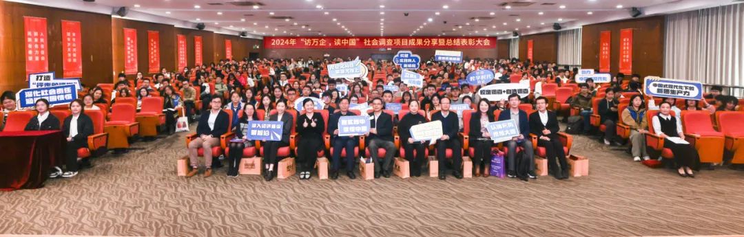會上播放了2024年“訪萬企,讀中國”社會調(diào)查項目回顧視頻。今年的萬企項目聚焦“中國式現(xiàn)代化下的新質(zhì)生產(chǎn)力”主題,吸引了來自全校11個學院的200余名本碩博學生組成22支調(diào)研隊伍,在60余名教師的指導下,調(diào)研科技創(chuàng)新與產(chǎn)業(yè)升級的前沿陣地,對信息技術(shù)、綠色能源、生物醫(yī)藥等領(lǐng)域的企業(yè)進行實地走訪。師生與企業(yè)負責人“零距離”溝通,“面對面”交流,探究新質(zhì)生產(chǎn)力發(fā)展影響因素,考察新質(zhì)生產(chǎn)力對高質(zhì)量發(fā)展的推動效果,為企業(yè)現(xiàn)代化發(fā)展提供對策建議。