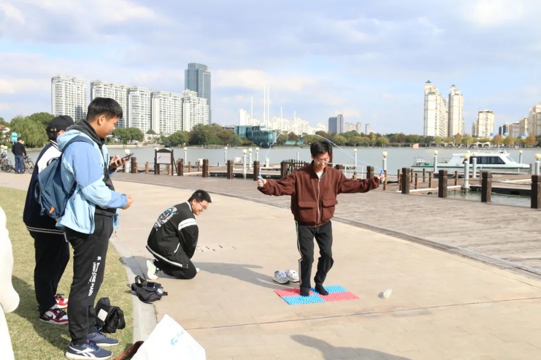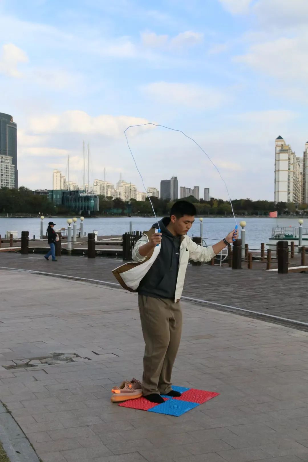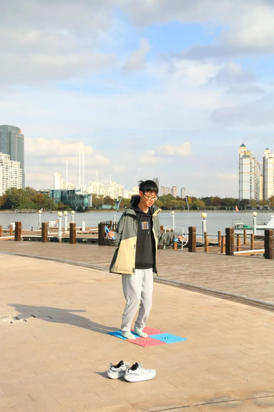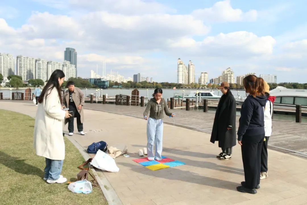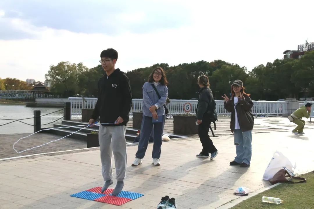 在本項目中,每個小組總共需要在指壓板上完成100次跳繩。參與者們在板上跳繩時,指壓板的凸起點刺激腳底,帶來輕微疼痛感,同時鍛煉平衡和協調能力,既有趣又挑戰性十足。現場的同學無不被輕松愉快的氣氛所感染!