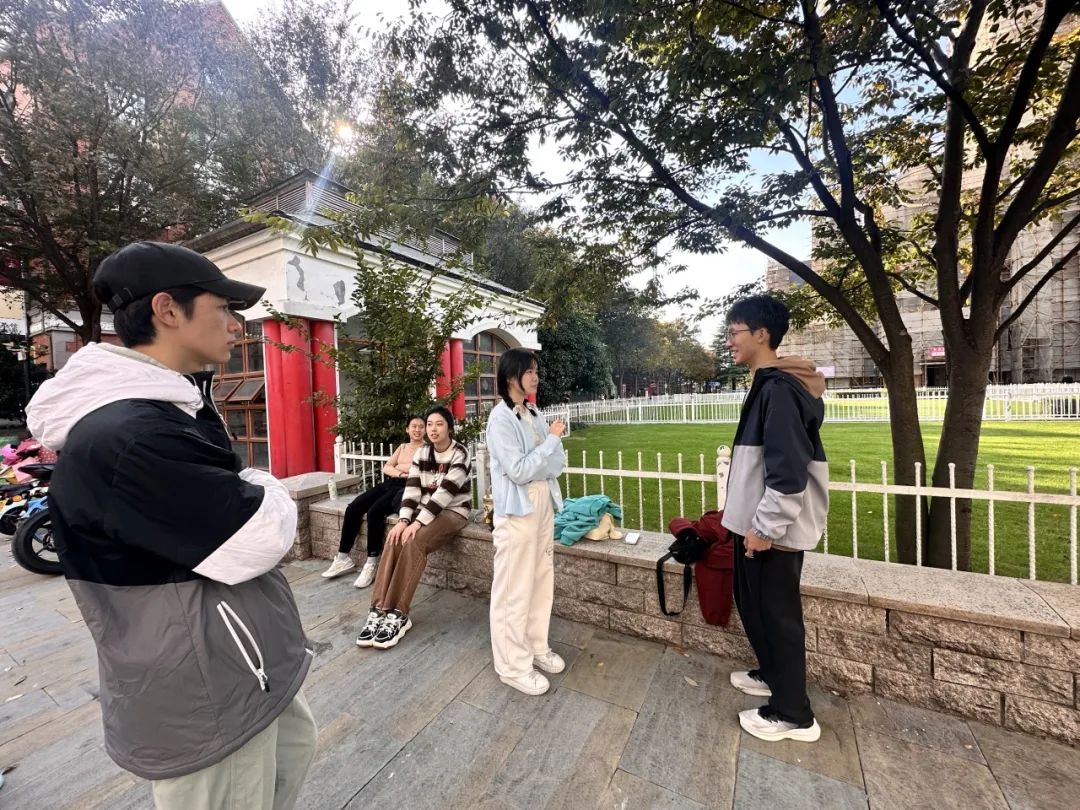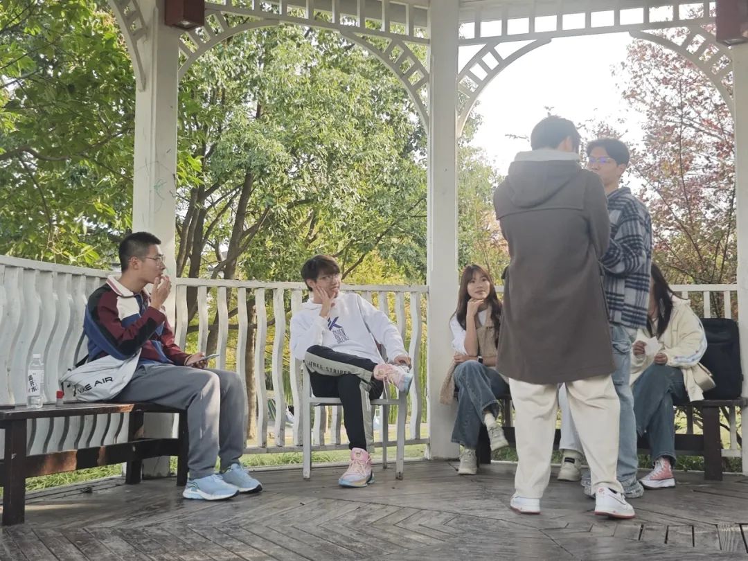 同學們首先在小鎮中心區域的起點集結。院學生會主要負責人宣布本次活動的游戲規則和注意事項。本次活動分為10個小組,每個小組需要找到PPT中給有圖片提示的5個打卡點,完成NPC布置的任務以獲得該點的打卡印章,并根據線索尋找“神秘NPC”,集齊后根據線索前往終點。