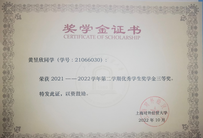 黃昱欣同學以卓越的學術成就和不懈的努力,贏得了這份獎學金榮譽。她的勤奮和才華,不僅為自己贏得了認可,也為我們的樹立了榜樣。這份獎學金是對她過去努力的肯定,也是對未來潛力的投資。她對知識的渴望和對卓越的追求,讓她在學術的道路上熠熠生輝。黃昱欣同學的成就,是對我們所有人的鼓舞,提醒我們以她為榜樣,不斷追求卓越。愿這份榮譽成為她未來旅程中的燈塔,照亮她前進的道路,激勵她繼續在學術和生活中取得更大的成就。再次祝賀黃昱欣同學,期待她未來更多的輝煌。