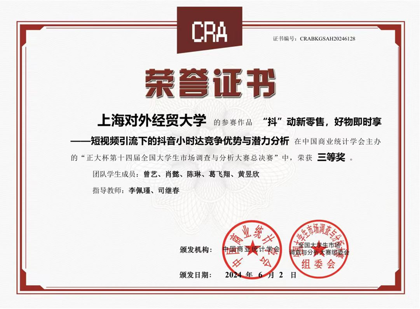 黃昱欣同學的目標是在統計咨詢或數據分析領域繼續深化,同時注重培養溝通能力、團隊協作能力和創新能力,為成為一名優秀的數據科學家做出努力。她也鼓勵大家,在不久的將來,明確自我目標,努力為之奮斗。