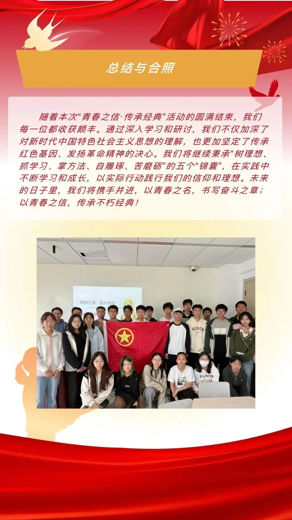 同學們組織探訪了中國共產黨人精神譜系的發源地,追尋中國共產黨人精神譜系的歷史脈絡,共同錄制青年視角的參訪視頻,記錄下具有紅色基因的展品解說,最后開展訪談活動,與在現代化建設中奮發向上的人物對話。