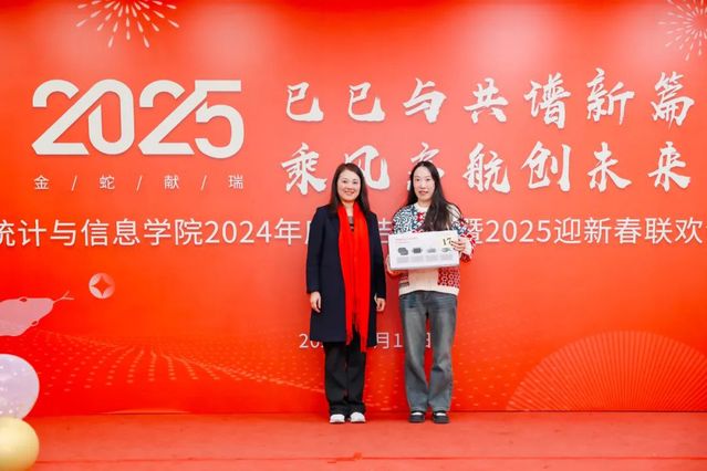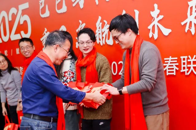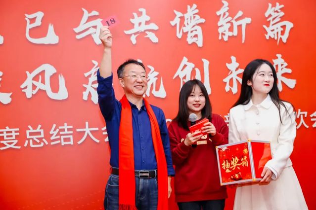 在聯歡會的尾聲,學院領導們紛紛為教職工送上新年祝福。張日權院長為蛇年本命年的教職工贈送了紀念品,祝福他們在新的一年金蛇迎福,蛇運亨通,蛇年大吉。黃靜書記表達了對老師們的感謝和祝福,對學院事業發展的美好愿景,希望全體教職工高揚理想,以奮斗、以激情、以團結、以擔當,在2025年濃墨重彩書寫嶄新篇章!