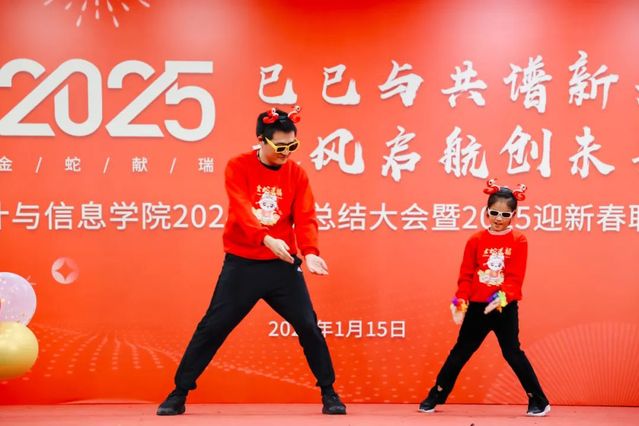 新入職的老師們率先登場,帶來精彩的《歌曲串燒》表演,展現了新教師的青春風采,為聯歡會注入了新春的喜悅與活力;信息管理系和數據科學系教師帶來《舞蹈串燒》表演,用優美的舞姿詮釋了對生活的熱愛和對工作的熱情,將現場氣氛推向了新的高潮;應用數學系教師帶來歌曲表演《你曾是少年》,熟悉的旋律響起,喚起了在場老師們對青春的回憶,激勵大家永保少年心氣,赤誠如初,勇敢面對未來的挑戰;經濟統計系教師攜手教師子女,共同演奏曲目《天空之城》,悠揚的旋律讓大家感受到了音樂的魅力和夢想的力量;計算機與人工智能系教師帶來歌曲《走在鄉間的小路上》,歡快的歌聲讓大家感受到了大自然的美好,也鼓勵著老師們在工作中能夠找到生活的樂趣,享受每一個平凡而美好的瞬間;最后,數理統計系教師帶來詩朗誦《年終總結》,他們用幽默詼諧的語言,回顧了過去一年學院的點點滴滴,讓大家在歡笑中感受到了學院的發展與進步,也對新的一年做出了展望與憧憬。