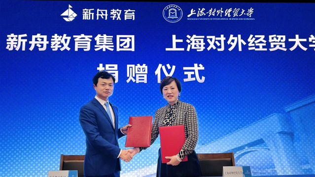 4月17日,新舟教育集團向上海對外經貿大學捐贈100萬元公益基金,融合校企特色與資源優勢,協同培育創新人才。捐贈儀式在上海對外經貿大學古北校區綜合樓510室舉行。新舟教育聯合創始人張培攜核心管理層,上海對外經貿大學校友工作聯絡處處長晏瓊、合作交流處處長趙靜、統計與信息學院黨委書記黃靜等出席捐贈儀式,儀式由教育發展基金會辦公室主任葉茹蕙主持。