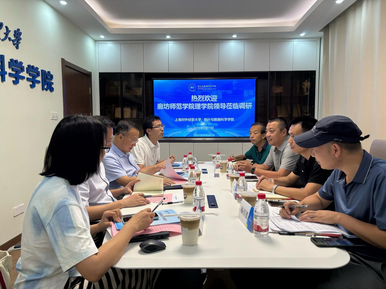 2025年9月11日下午,廊坊師范學院理學院院長、科研處處長岳孟田教授一行蒞臨我院,就統(tǒng)計學學科建設、數(shù)據(jù)科學與大數(shù)據(jù)技術專業(yè)以及應用統(tǒng)計專業(yè)碩士建設等開展專題調(diào)研交流。統(tǒng)計與數(shù)據(jù)科學學院院長張日權、副院長李睿、趙海瓊,應用統(tǒng)計專碩主任、數(shù)理統(tǒng)計系系主任范彩云參加本次調(diào)研活動。會議由李睿主持。