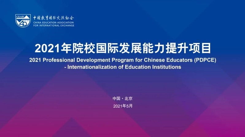 中國教育國際交流協會于1981年7月成立,是中國教育界開展民間對外教育合作與交流的全國性組織。項目針對高校外事工作實際需求,圍繞教育國際合作交流領域的重點領域和熱點話題,針對校級領導和教育外事干部能力建設需要,重點設計了政策解讀、辦學實踐、教育外事專業能力、跨文化溝通和管理等四大課程體系,通過專家講座、業務交流和現場教學等形式,著力提升外事干部專業能力,推動院校國際交流與合作提質增效。