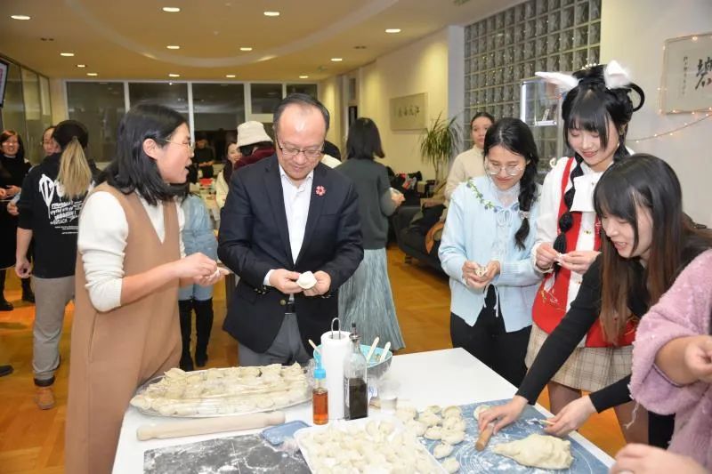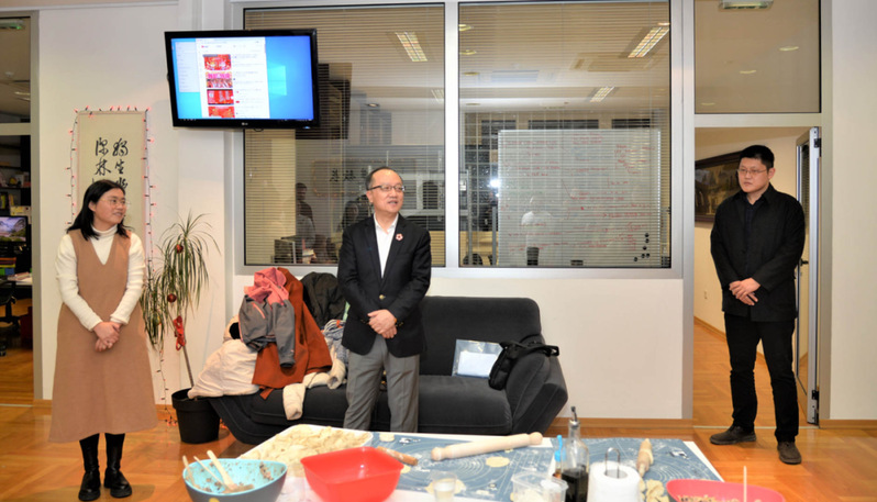 2023年1月13日,駐克羅地亞大使齊前進攜使館青年外交官,赴薩格勒布大學(xué)孔子學(xué)院參加“溫暖迎春”在克教師和留學(xué)生聯(lián)誼活動,與師生們一同包餃子、聊家常,送去“春節(jié)暖心包”及新春祝福。
