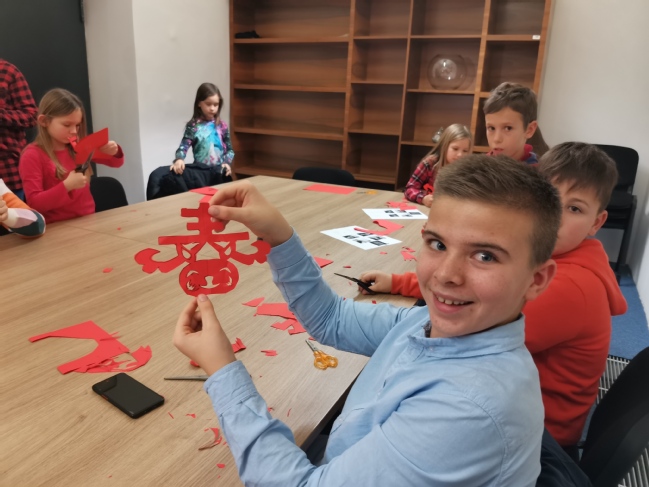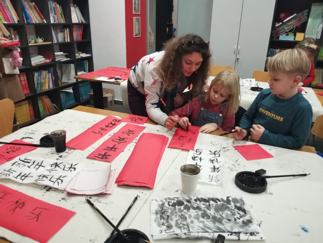 臘月二十八是中國(guó)傳統(tǒng)年俗中貼窗花貼春聯(lián)的日子。由當(dāng)?shù)貙W(xué)生主持、志愿者配合的新年剪紙工作坊為大家提供了一個(gè)親身體驗(yàn)中國(guó)剪紙和窗花制作過(guò)程的機(jī)會(huì)。大家懷著極大的熱情,剪出了一張張精美的窗花:有象征兔年新春的“春兔”、有象征幸福美滿(mǎn)的“福”、還有代表花開(kāi)富貴的各種花卉。同時(shí),科佩爾孔堂還設(shè)置了書(shū)法工作坊讓大家通過(guò)寫(xiě)下關(guān)于新年的美好祝福體驗(yàn)中國(guó)書(shū)法。這些無(wú)不讓在場(chǎng)的各位參與者感受到了濃濃的中國(guó)“年味兒”。