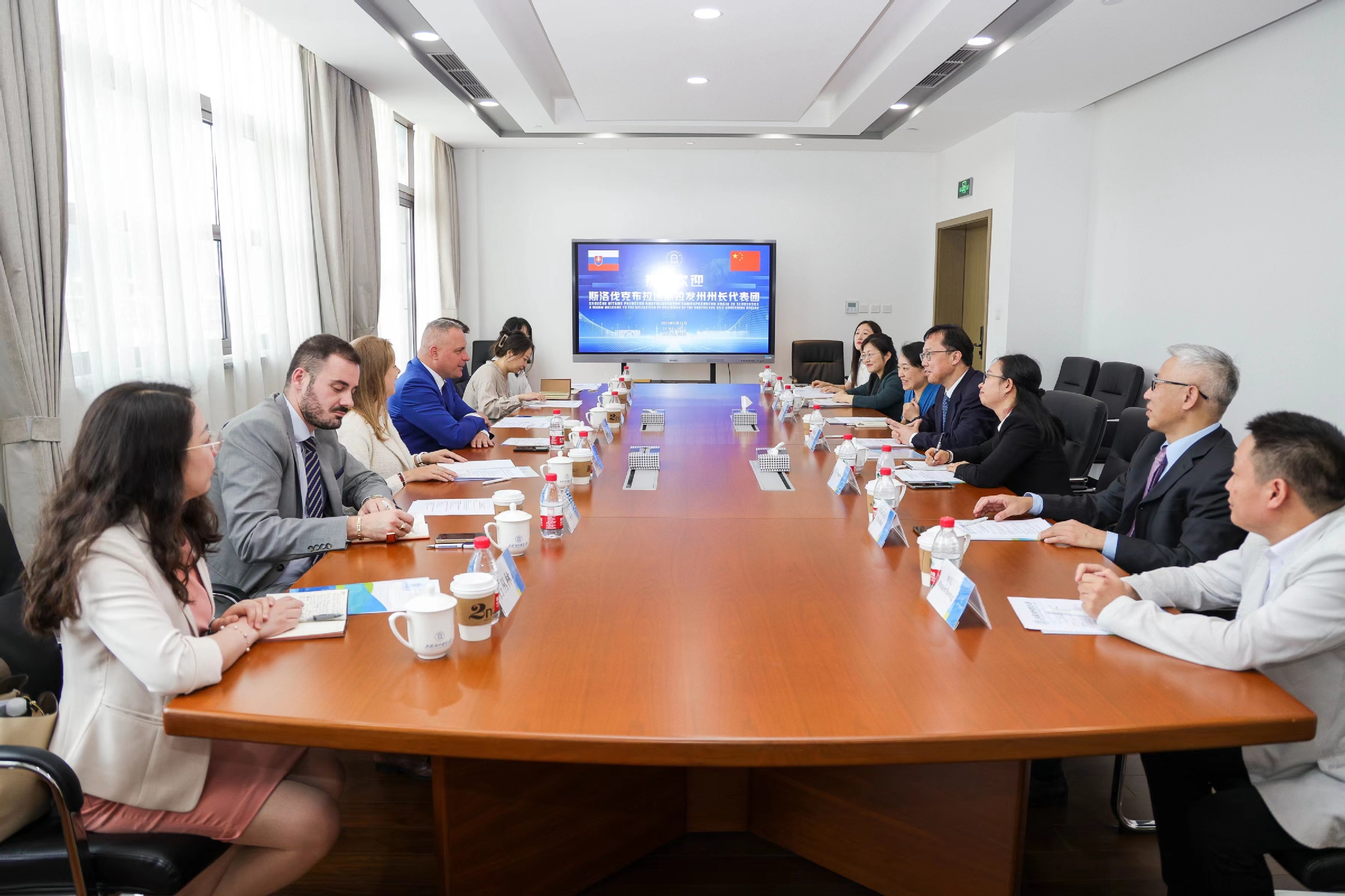 上海市人民政府外事辦公室歐非處副處長石叢林介紹了本次來訪背景,對上海對外經貿大學與考門斯基大學之間合作取得的豐碩成果表示贊賞。她表示,著眼服務國家總體外交大局,時值上海市與斯洛伐克布拉迪斯拉發州締結友好州市關系20周年之際,為深入推動兩地友好務實交往,州長一行來滬訪問對于深化兩校交流和推動合作創新有著重要的意義。
