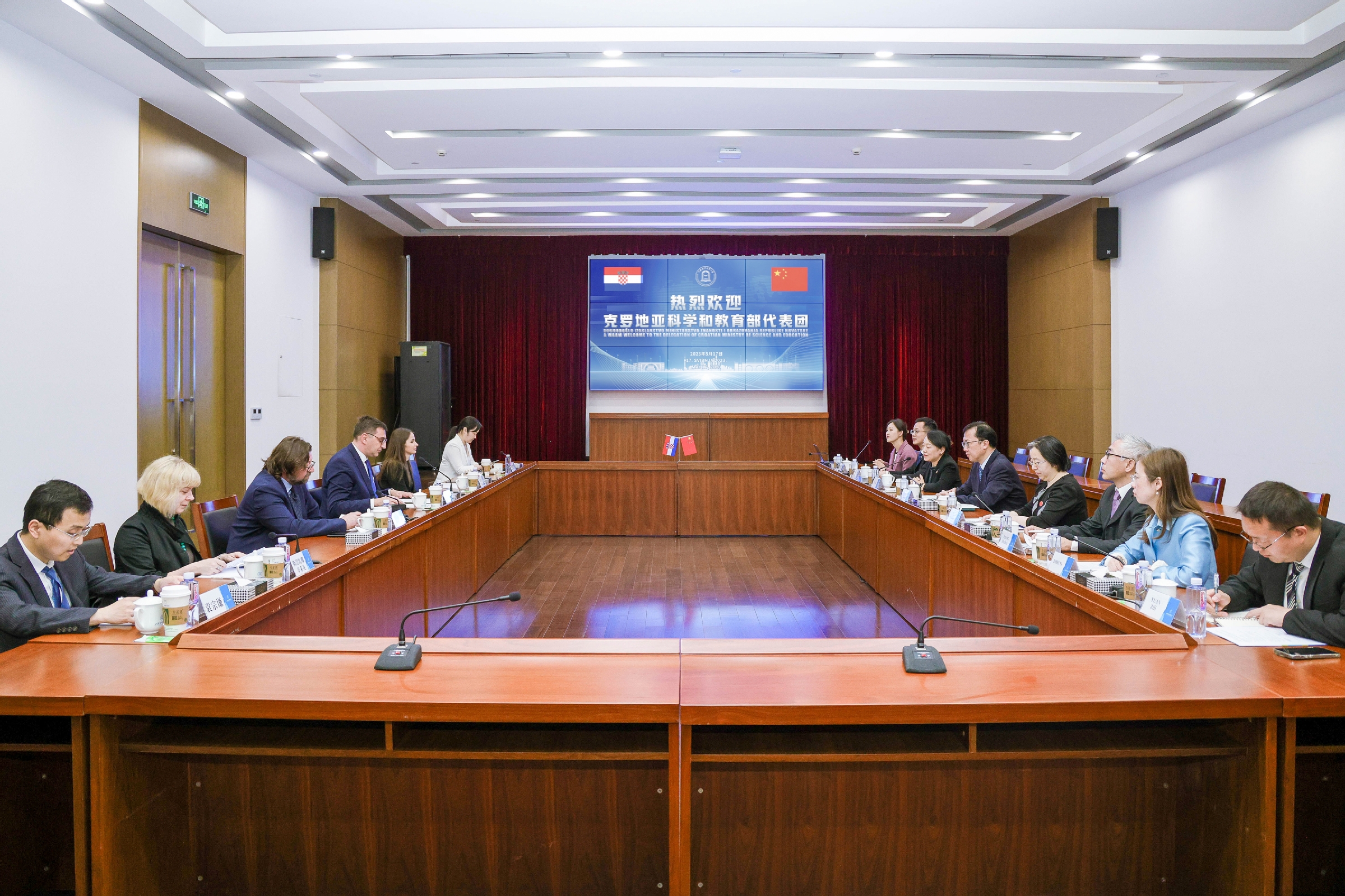應中國科學技術部邀請,克羅地亞科學和教育部代表團前來我國訪問,并在上海之行特別訪問我校。5月17日下午,校長汪榮明在古北校區(qū)綜合樓會見了代表團成員克羅地亞科學和教育部國務秘書伊維察·舒沙克、歐洲事務協(xié)調(diào)和國際合作司司長斯塔沙·斯肯日奇、部長辦公室顧問達妮耶拉·什佩哈爾、歐洲事務協(xié)調(diào)和國際合作司高級顧問斯涅扎娜·辛采克以及陪同人員中國科學技術部國際合作司二級調(diào)研員段予瑩,上海科技交流中心國際處高級項目主管袁宗謙。國際中文教育學院黨支部書記鄒囡囡、學校辦公室副主任,合作交流辦公室主任巫雪松、外事處副處長張水輝、博物館館長丁燁等參加了會見,外事處處長金泉主持會談。