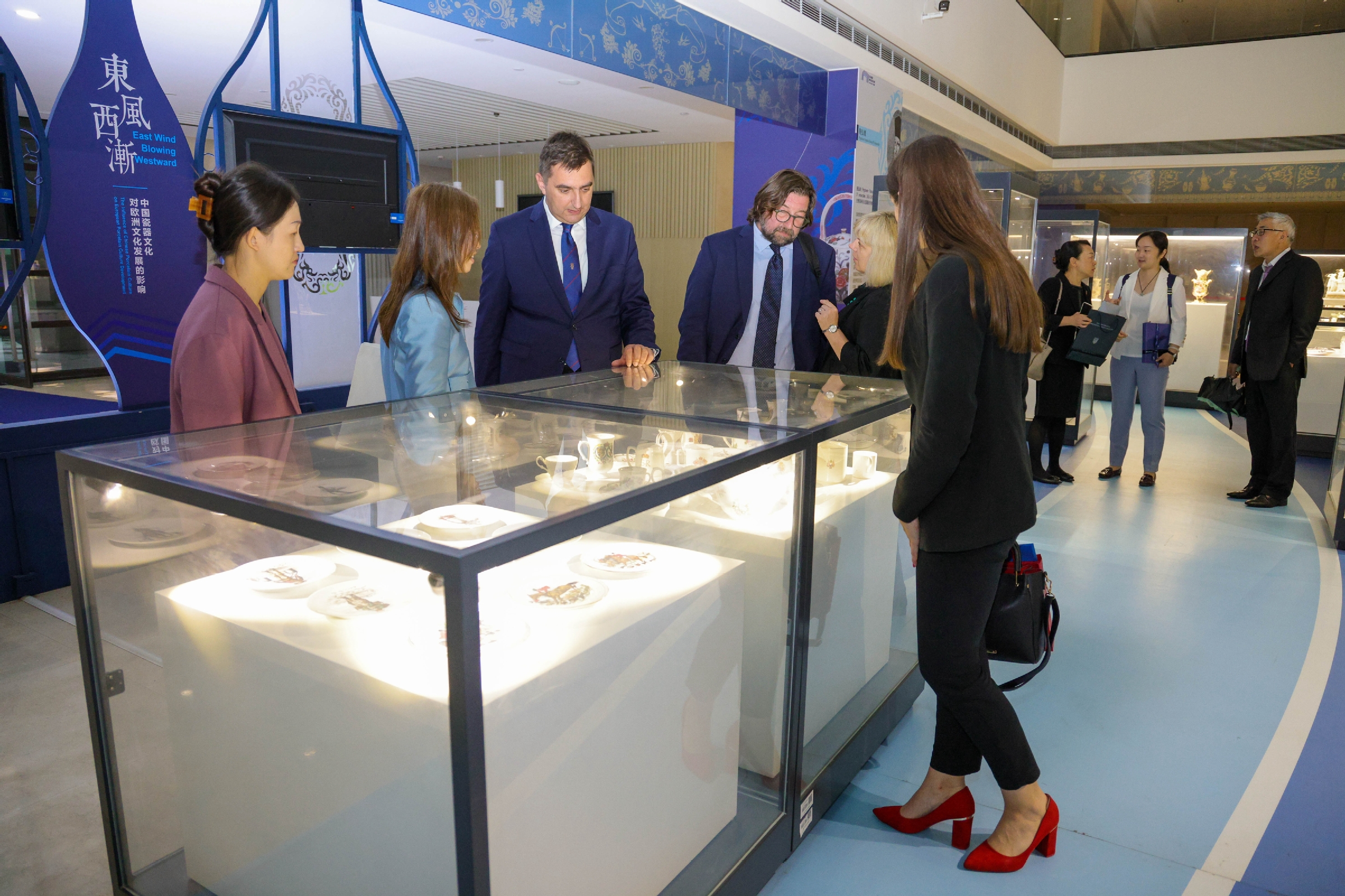 隨后,在博物館館長丁燁的陪同下,舒沙克一行參觀了學校博物館瓷器展。