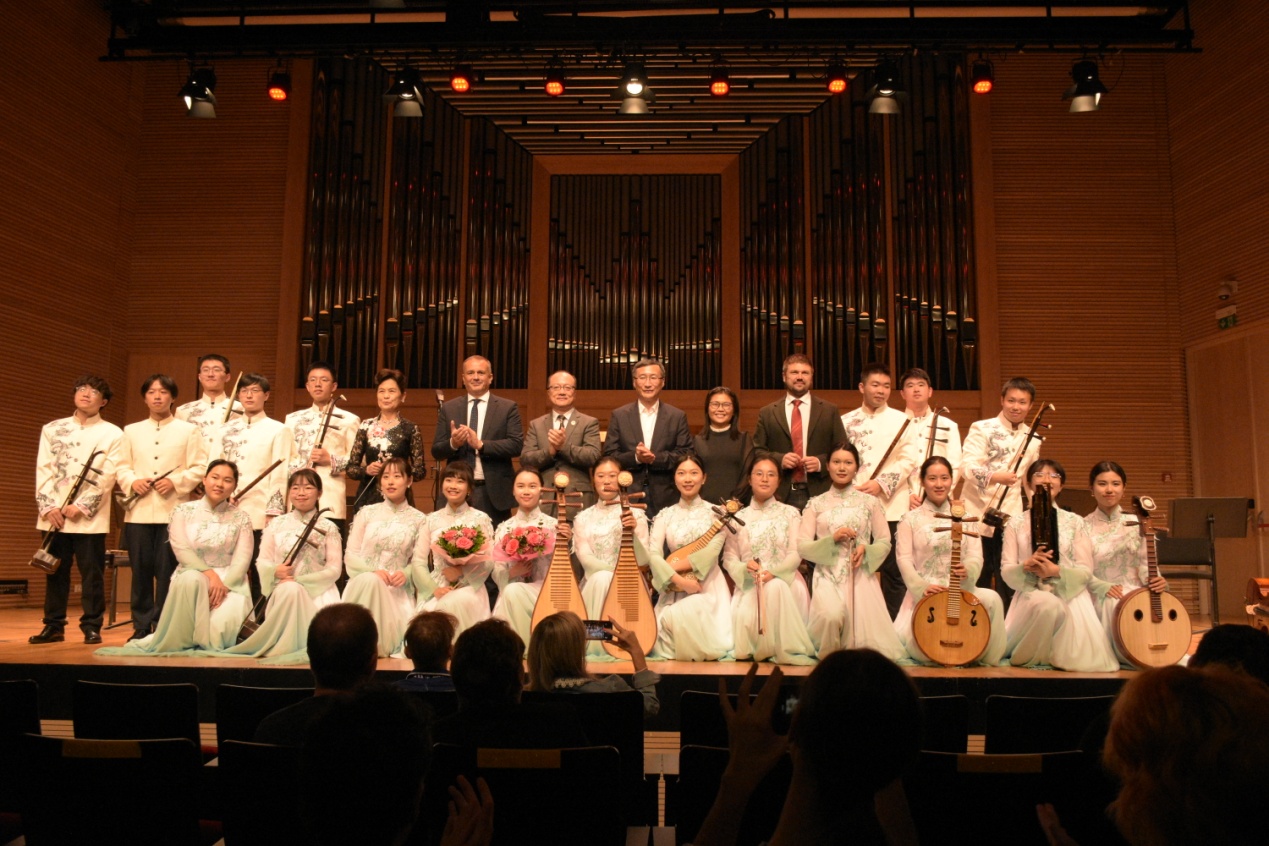 105日,克羅地亞薩格勒布大學孔子學院在薩格勒布大學音樂學院成功舉辦了題為“絲路華韻”的專場音樂演出。演出邀請南京大學民樂團進行表演。薩格勒布大學副校長帕維契奇、中國駐克羅地亞大使齊前進、南京大學副校長張峻峰出席演出。