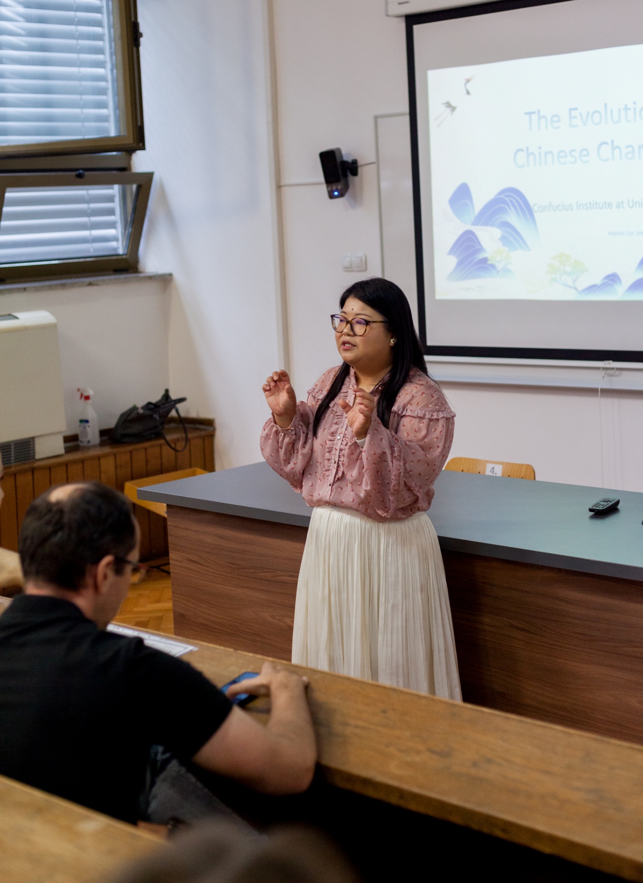 活動中,薩大孔院公派教師孫慧敏受邀進行了一場關于漢字演變的講座,生動有趣地向聽眾們介紹了漢字演變的歷程。