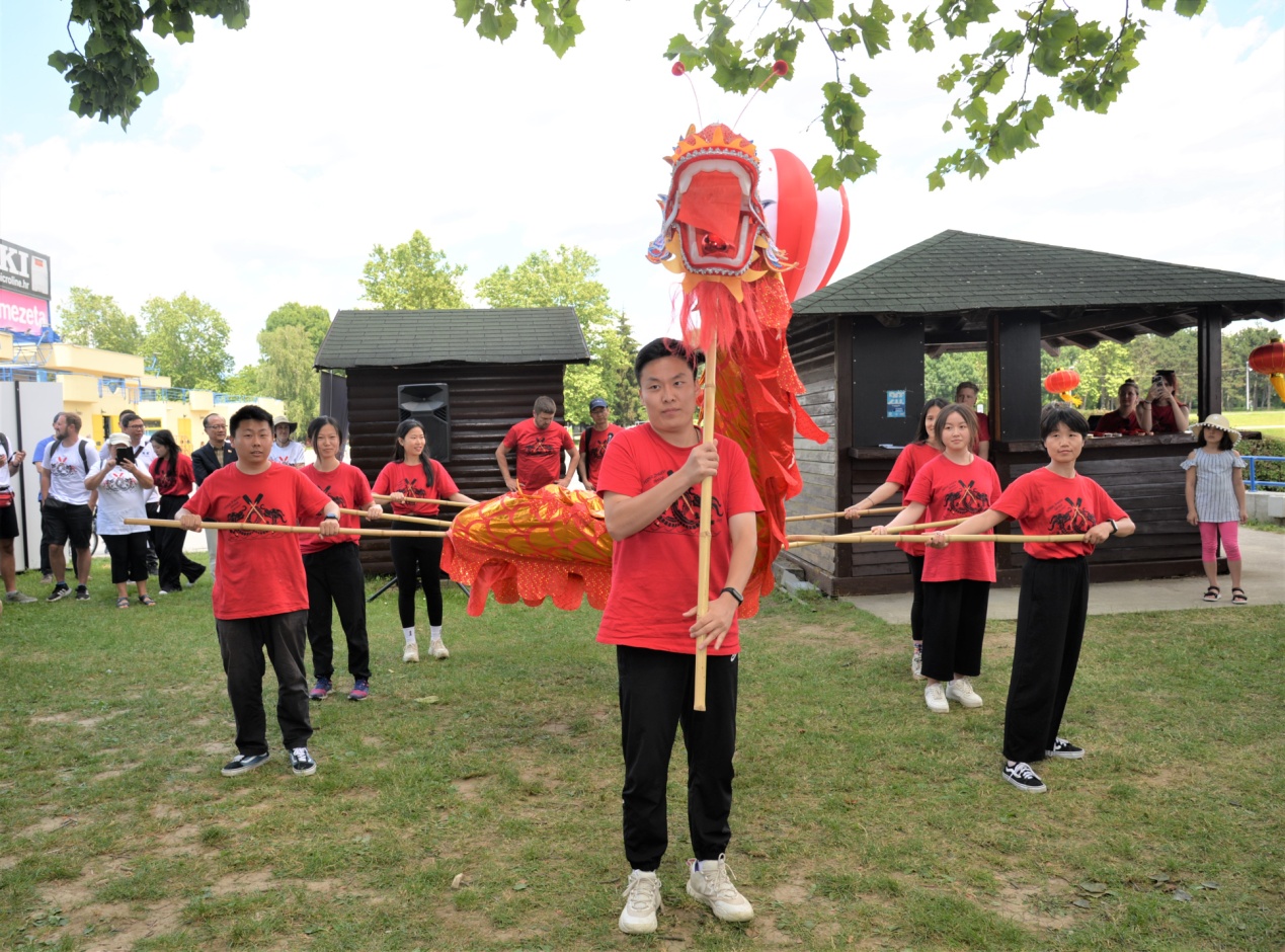 龍舟賽后,薩大孔院師生還為現場觀眾表演了舞龍、龍舟制作、太極拳、書法和踢毽子等節目。
