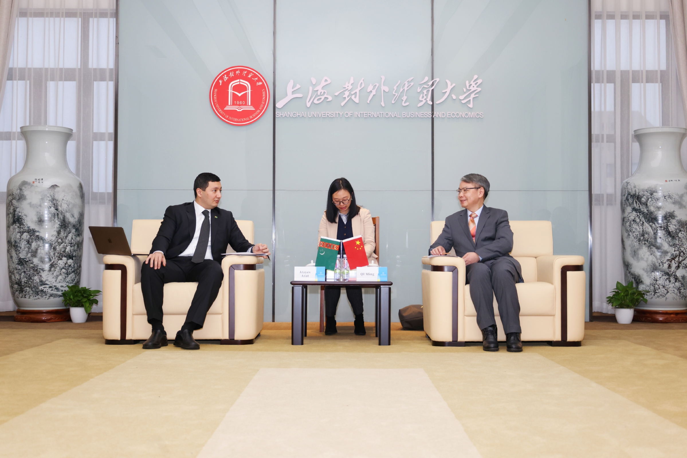 1月31日下午,土庫曼斯坦教育部副部長阿扎特·阿塔耶夫一行到訪學校,校黨委書記祁明在古北校區會見了來訪嘉賓。外事處相關同志陪同會見。