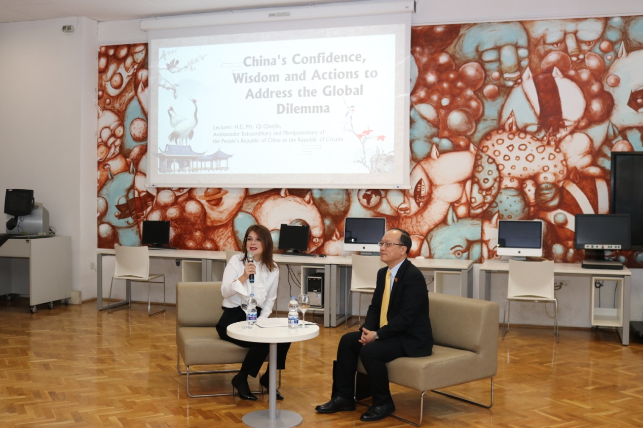 1月29日,中國駐克羅地亞大使齊前進(jìn)受邀為薩大經(jīng)濟(jì)學(xué)院以及在薩大經(jīng)濟(jì)學(xué)院訪問學(xué)習(xí)的師生們作了以《全球困境中的中國信心、中國智慧和中國行動》為題的專題講座。講座由薩大經(jīng)濟(jì)學(xué)院院長馬里斯主持。
