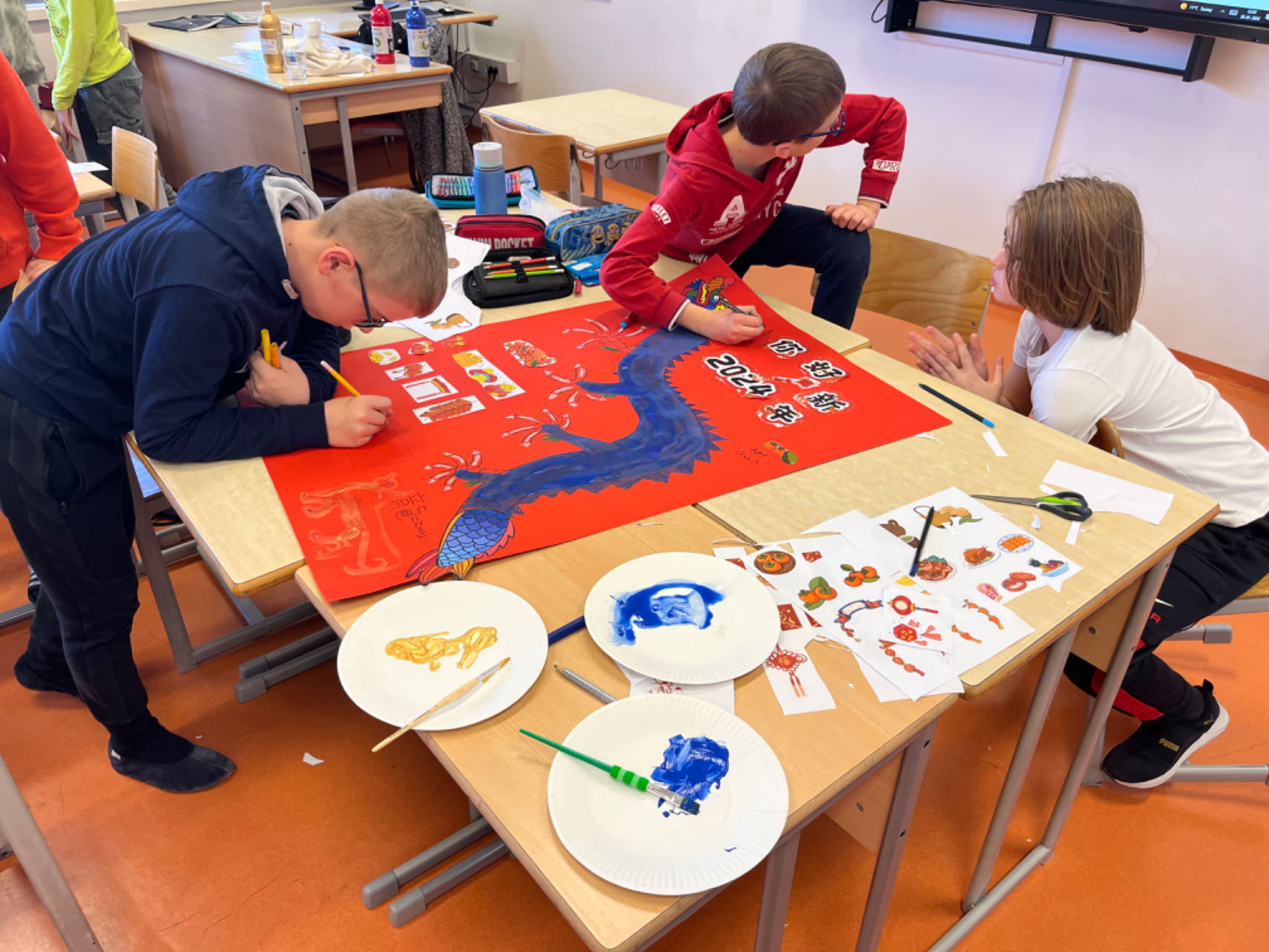 本次活動吸引了眾多學(xué)生的熱情參與。大家共同書寫春聯(lián)、制作剪紙窗花、制作創(chuàng)意手工龍、包餃子,更是集思廣益共同打造了一條富有創(chuàng)意和中國傳統(tǒng)文化內(nèi)涵的中國龍。