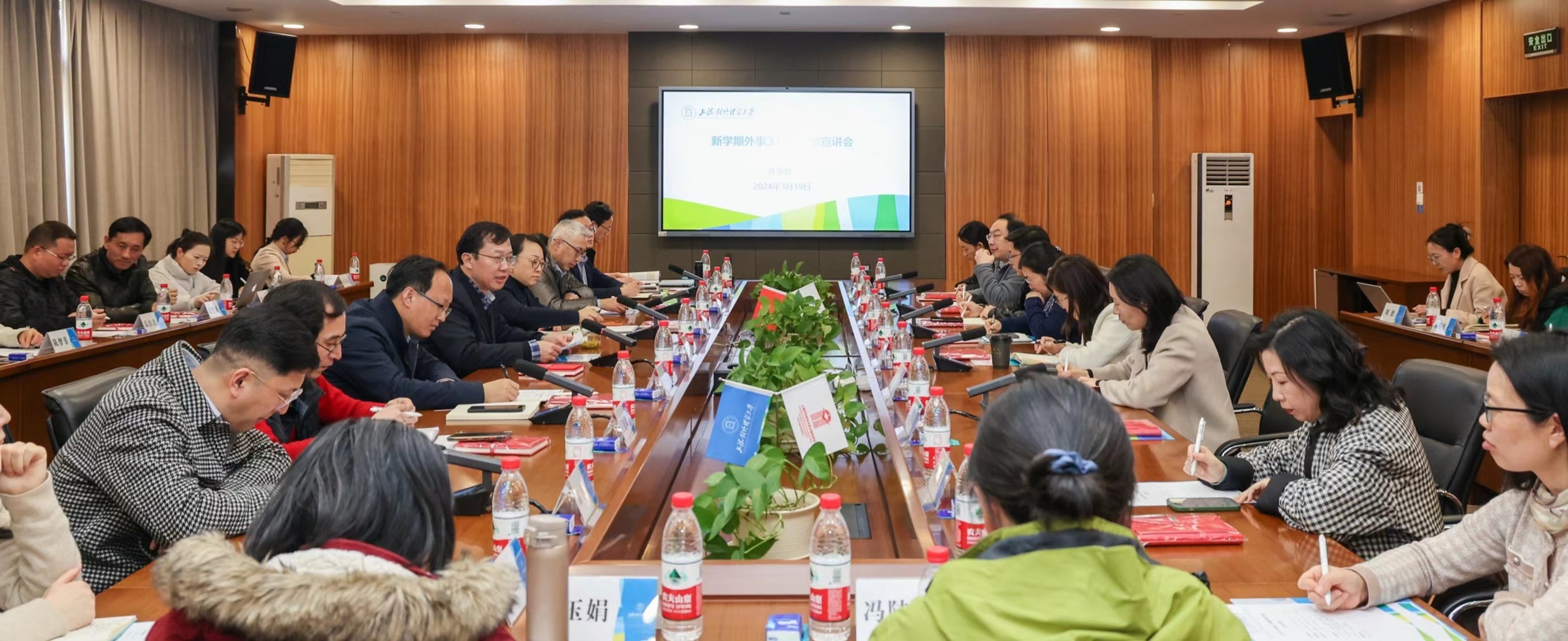3月19日下午,新學期外事工作暨外事政策宣講會在松江校區德政樓317會議室召開。汪榮明校長出席會議,各學院及相關職能部門領導或代表以及外事處全體工作人員參加,會議由外事處處長金泉主持。
