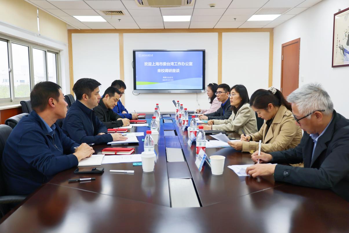 4月12日下午,上海市委臺灣工作辦公室(簡稱“市臺辦”)副主任陽禮華一行來訪松江校區,調研學校對臺工作。副校長姜秀珍出席活動。會議由學校港澳臺辦公室副主任張水輝主持。