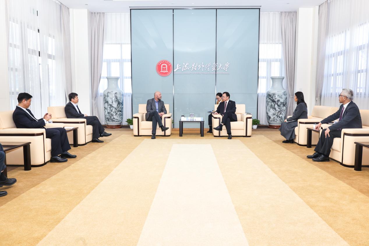 11月8日上午,美國科羅拉多州立大學(Colorado State University,CSU)專業科學碩士項目主任、生態系統科學與可持續發展系主任Richard Conant一行訪問上海對外經貿大學。校長汪榮明、副校長姜秀珍會見代表團。學校外事處、研究生院、工商管理學院、國際經貿創新與治理研究院等部門相關負責人陪同會見。