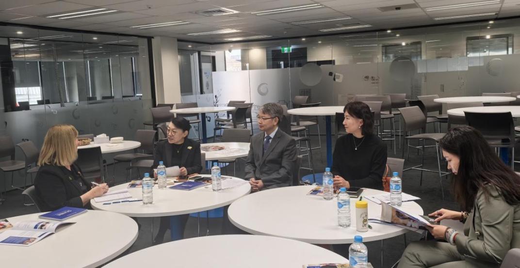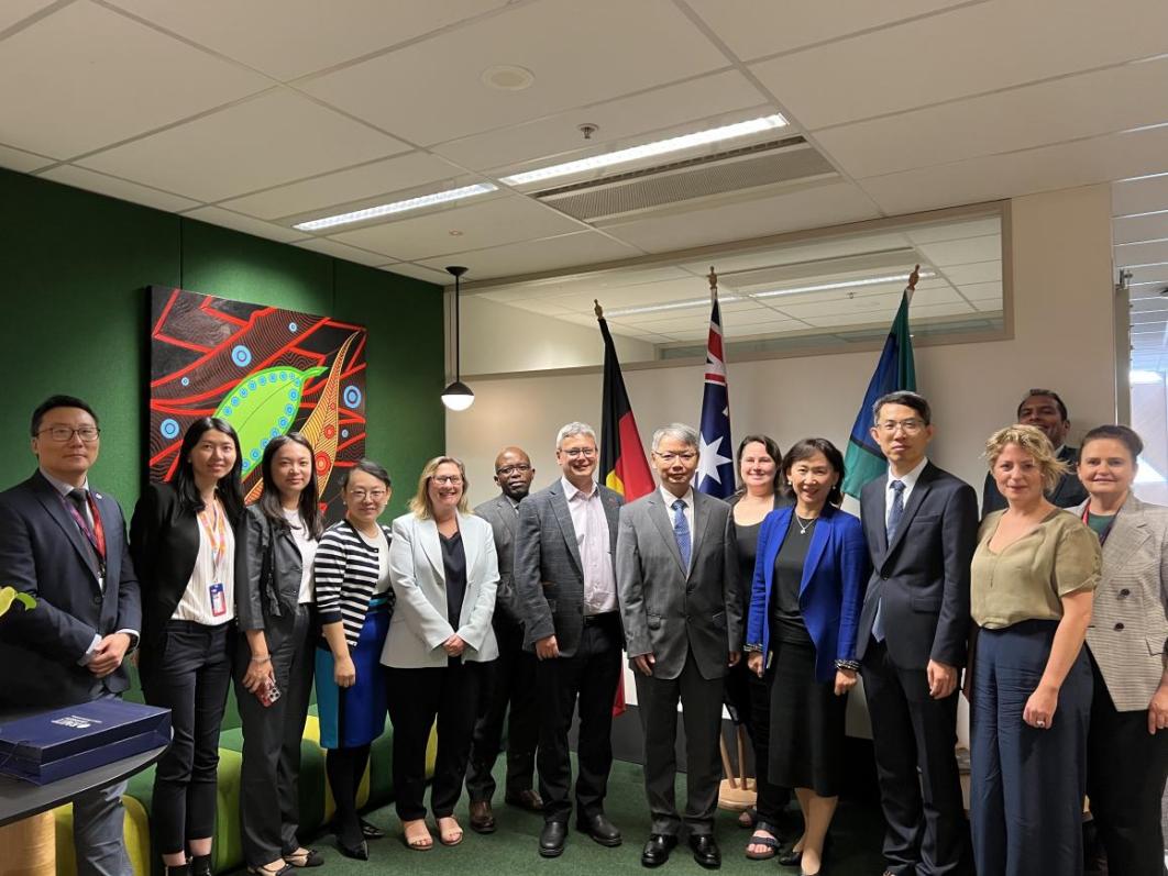 在訪問澳大利亞麥考瑞大學(Macquarie University)期間,代表團與副校長Lee-Ann Norris女士、大中華區區域總監 Stella Wang女士、商學院副院長Stephanie Huang副教授、精算研究與商務分析系主任 Babak Abedin 教授、Zhuo Jin教授等代表進行會晤。