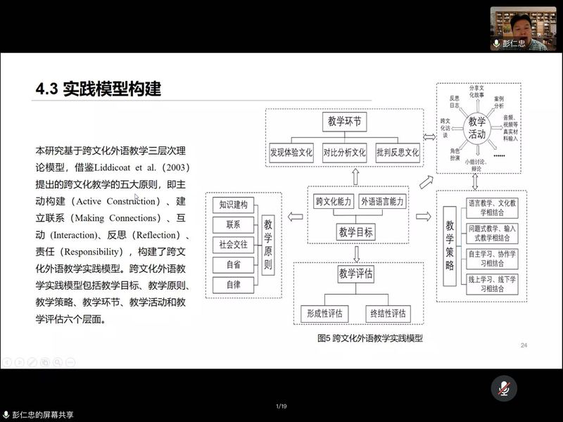 師生對此次的講座表現出了濃厚的興趣,在互動環節大家熱情頗高,蔡雨陽教授、孟嬌嬌教授及學生們與彭教授在量表模型、跨文化能力培養等問題上進行了深入探討。最后,由蔡雨陽教授作了總結發言,對彭教授精彩的學術報告表達了誠摯的感謝。此次講座啟發師生們以國際化的視野,做到跨文化能力發展與外語語言技能訓練的有機統一。