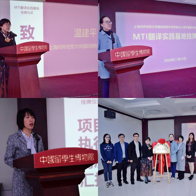 11月12日下午,國際商務外語學院與上海中國留學生博物館、上海魯匠教育科技有限公司共建實踐基地簽約及掛牌儀式順利舉行。國際商務外語學院溫建平院長、MTI學位點負責人吳朋教授、郭義副教授,上海留學生博物館執行館長李欣欣女士、上海魯匠教育科技有限公司創始人張立秋先生及項目相關師生代表出席了本次簽約及掛牌儀式。