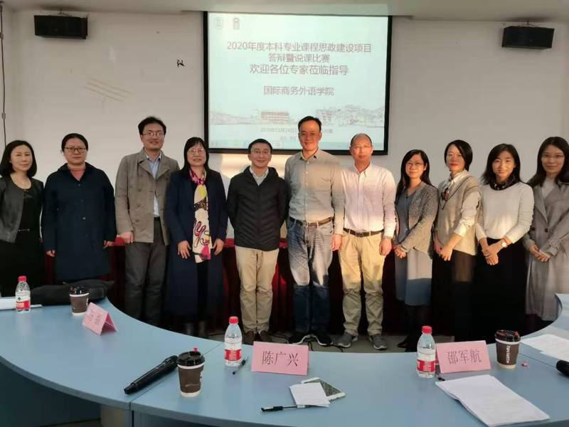 為深化本科專業課程思政建設,探討課程思政的建設目標、內容和教學方法,提升教師課程的育德意識和育人能力,11月14日下午,國際商務外語學院在信息樓530舉辦了2020年度本科專業課程思政建設結項答辯暨說課比賽。本次比賽邀請復旦大學楊振教授、上海外國語大學陳廣興教授、上海立信會計金融學院邵軍航教授三位專家擔任評委,王玉副院長、六位課程思政建設項目負責人和學院各專業教師代表參加。比賽由王玉副院長主持。