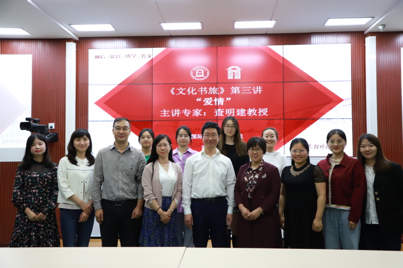 為深入貫徹國(guó)務(wù)院《關(guān)于實(shí)施中華優(yōu)秀傳統(tǒng)文化傳承發(fā)展工程的意見》提出的“堅(jiān)持交流互鑒、開放包容”的指導(dǎo)原則,提升學(xué)生的人文素養(yǎng)、國(guó)際視野、文化自信和跨文化溝通能力,國(guó)際商務(wù)外語學(xué)院開設(shè)了全校通識(shí)課《文化書旅》。5月26日晚,《文化書旅》第三講在松江校區(qū)信息樓532舉行。上海外國(guó)語大學(xué)副校長(zhǎng)、博士生導(dǎo)師查明建教授應(yīng)邀做以“愛情”為主題的第三講導(dǎo)讀專家。國(guó)際商務(wù)外語學(xué)院院長(zhǎng)溫建平教授出席并隆重介紹了查教授。副院長(zhǎng)王玉副教授為本次主講教師。學(xué)院80余名師生到場(chǎng)聆聽了本次課程。