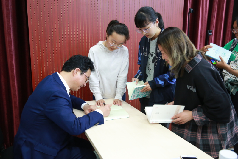 查明建教授旁征博引、妙語如珠,多次贏得在座師生的熱烈掌聲。在主講教師王玉副教授的引導(dǎo)下,在場(chǎng)師生對(duì)愛情觀和婚姻觀有了更深入的理解,紛紛表示被查教授的精彩闡釋和自然流露的才情和詩(shī)意所折服,被查教授啟迪了心靈、開拓了智慧,學(xué)會(huì)了在愛情中處理好理智與情感的關(guān)系、小我與大我的關(guān)系、個(gè)人與社會(huì)的關(guān)系。最后是贈(zèng)書環(huán)節(jié),所有參與誦讀和回答問題的學(xué)生都領(lǐng)到了查教授親筆簽名的贈(zèng)書。