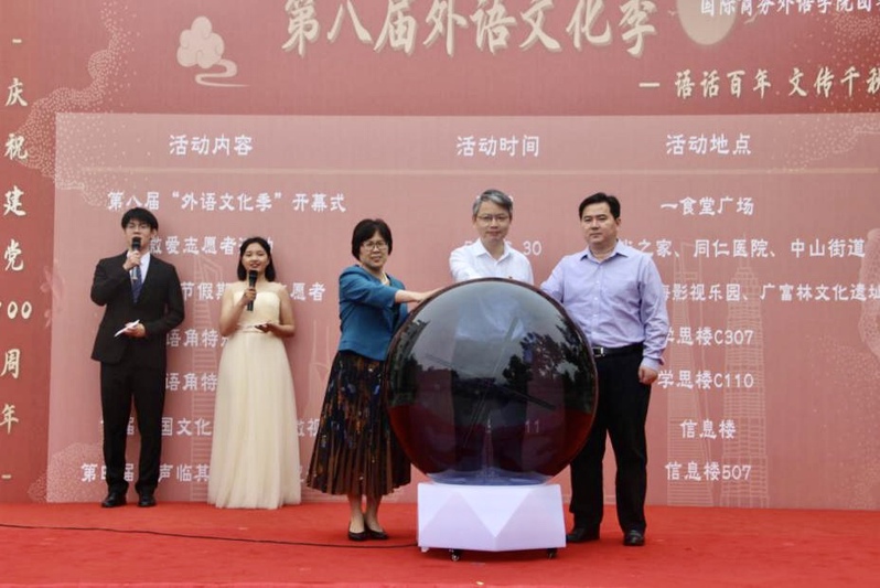 祁明、劉根春、溫建平共同開啟開幕球,宣布第八屆外語文化季正式開幕。
