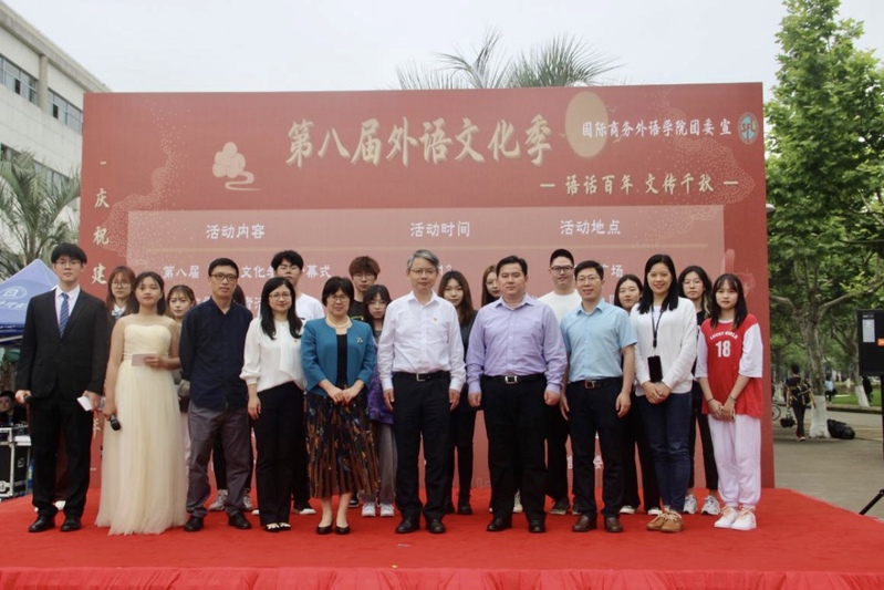 5月13日中午,國際商務外語學院第八屆外語文化季開幕式在一食堂廣場舉行。校黨委副書記、副校長祁明,黨委學工部副部長、學生處副處長趙靜,外語學院黨委書記劉根春、院長溫建平、黨委副書記謝峰,各部門各學院的嘉賓以及外院學生代表參加本次開幕式。