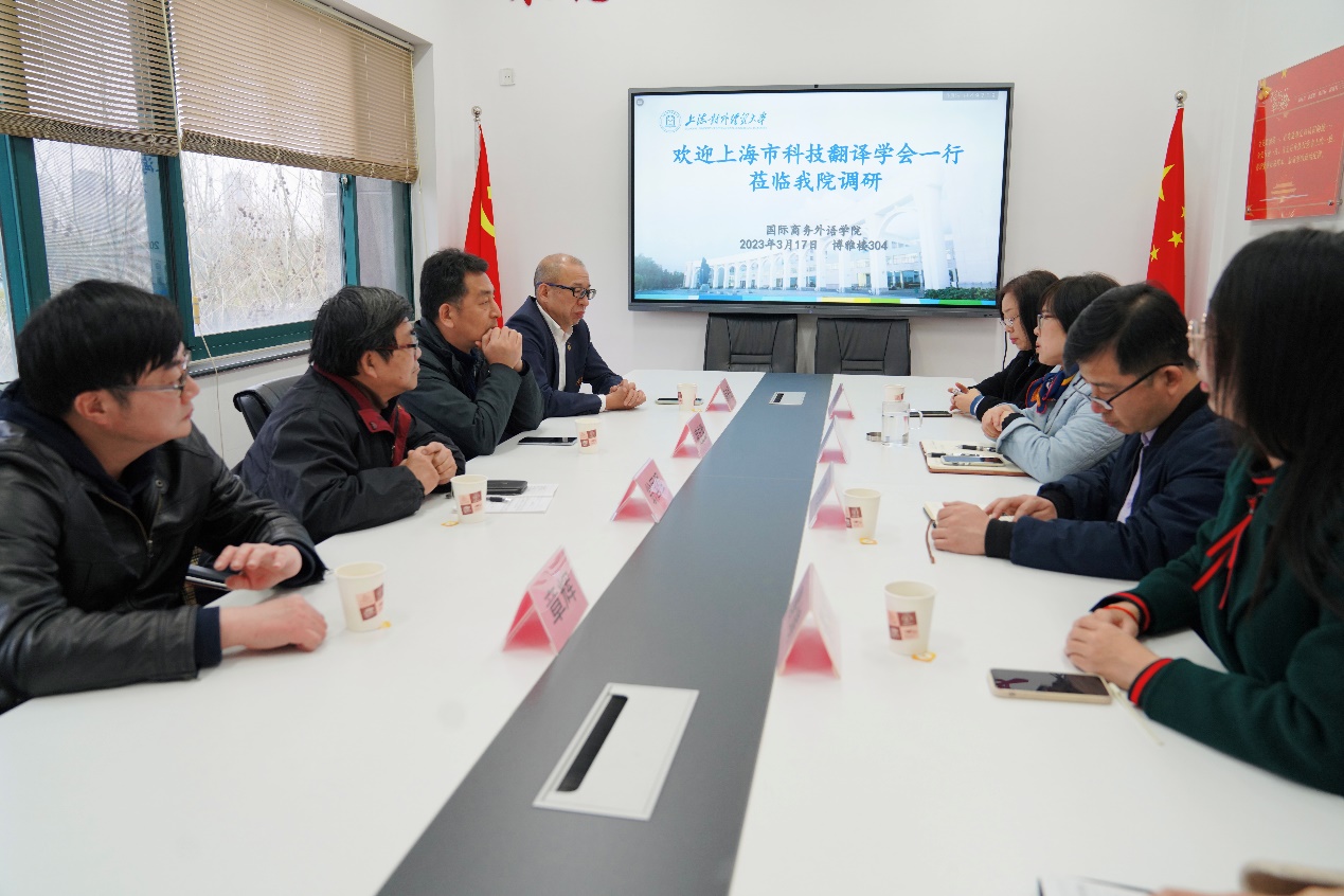 3月17日下午,上海市科技翻譯學會副秘書長翁國強,上海市科技翻譯學會常務理事、愛建集團紀委書記凌定勝,上海市科技翻譯學會監事長、蒙翰貿易公司總經理薛來民,IEERA國際英語認證辦公室主任章輝一行4人到國際商務外語學院進行調研。國際商務外語院院長溫建平,上海市科技翻譯學會常務理事、國際商務外語學院副院長郭義,上海市科技翻譯學會會員、我院教師李冬冬、景婧出席了本次調研活動。
