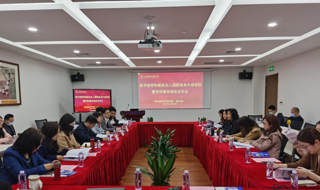 王群館長首先向國際商務外語學院介紹了圖書館“走進學院、服務學科”系列活動的主要內容和圖書館學科信息服務的重要作用,她高度評價了外語學院在教學、科研和學科建設等工作中取得的成績,并表示圖書館今后將進一步開展一系列科學服務活動,開啟與外語學院的合作機制,以最高的效率滿足外語學院師生的信息需求,助力外語學院科研發展。