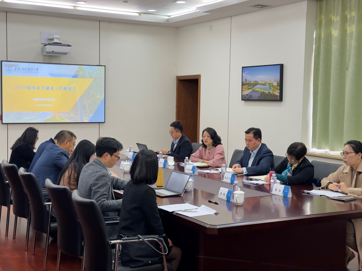 為深入貫徹落實習近平總書記關于高校畢業生就業創業的重要指示批示精神,促進畢業生實現高質量就業,3月28日上午,國際商務外語學院在信息樓510召開2023年就業工作推進會。校招生就業處處長魏舒、副處長居怡,國際商務外語學院領導班子、系主任、教工黨支部書記、畢業班輔導員參會。會議由黨委副書記徐峰主持。